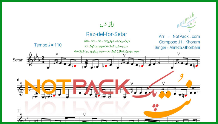 مشخصات نت راز دل برای سه تار از علیرضا قربانی