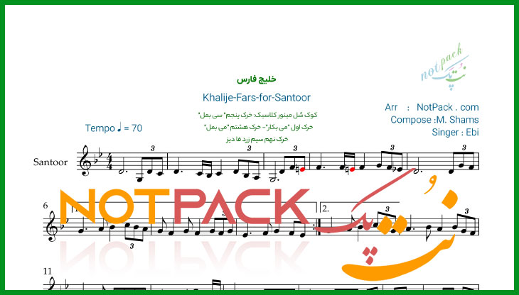 نت سنتور خلیج فارس از ابی/با هر نگاه بر آسمان این خاک هزار بوسه می زنم با فیلم آموزشی و آوا نویسی