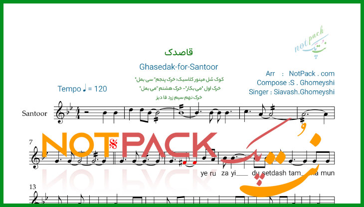 مشخصات نت سنتور قاصدک سیاوش قمیشی/یه روزایی دوست داشتم