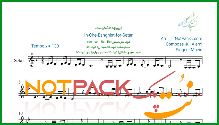 مشخصات نت سه تار این چه عشقیست از معین/باز لبهای عطش کرده من عشق سوزان تو را میجوید