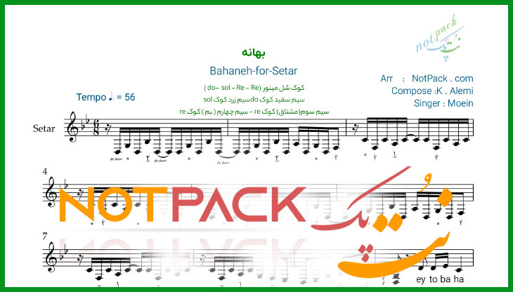 نت سه تار بهانه از معین/ای تو بهانه واسه موندن ای نهایت رسیدن با فیلم آموزشی و آوا نویسی