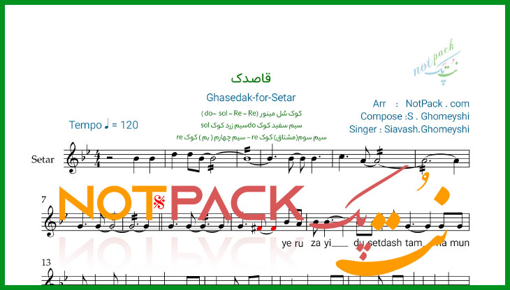 مشخصات نت سه تار قاصدک سیاوش قمیشی/یه روزایی دوست داشتم