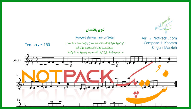 نت سه تار کوی بلاکشان مرضیه/ز کوی بلا کشان آمدم، کجا رفته ای بیا ساقی/با فیلم آموزشی و آوا نویسی