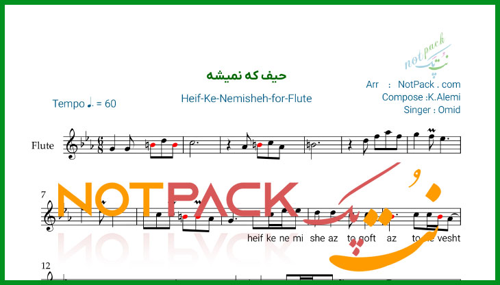 متن نت فلوت حیف که نمیشه از تو گفت امید