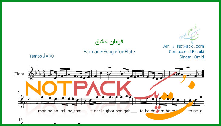 مشخصات نت فلوت فرمان عشق از امید/عشق فرمان داده که بتو فکر کنم