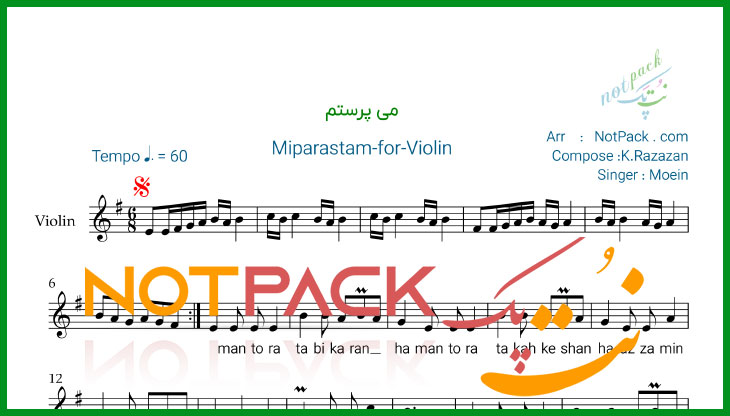 نت ویولن می پرستم از معین/من تو را تا بیکرانها من تو را تا کهکشانها با فیلم آموزشی و آوا نویسی