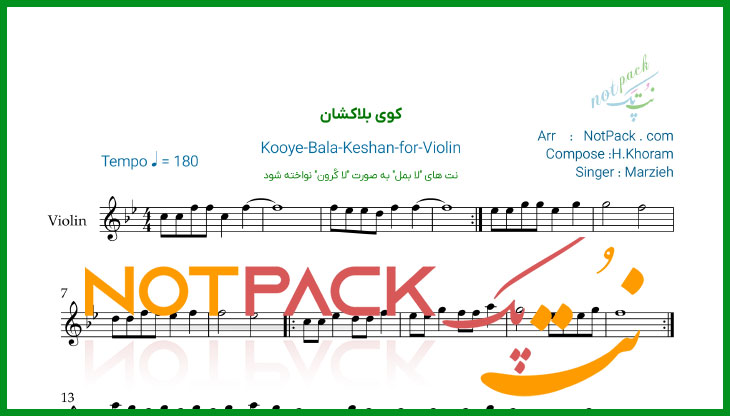 مشخصات نت ویولن کوی بلاکشان مرضیه/ز کوی بلا کشان آمدم، کجا رفته ای بیا ساقی