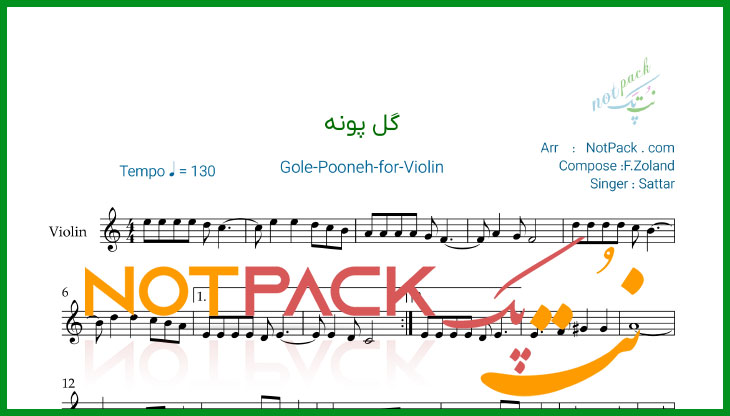 مشخصات نت ویولن گل پونه از ستار/گل پونه گل پونه دلم از زندگی خونه