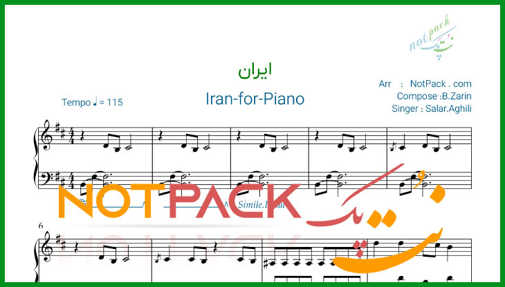 نت پیانو ایران از سالار عقیلی/ایران؛ فدای اشک و خنده ی تو/با فیلم آموزشی و آوا نویسی