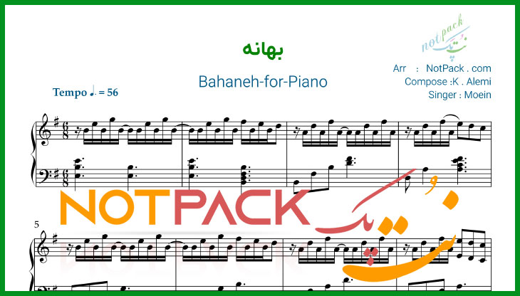 دانلود محصولات مرتبط نت پیانو بهانه از معین/ای تو بهانه واسه موندن ای نهایت رسیدن