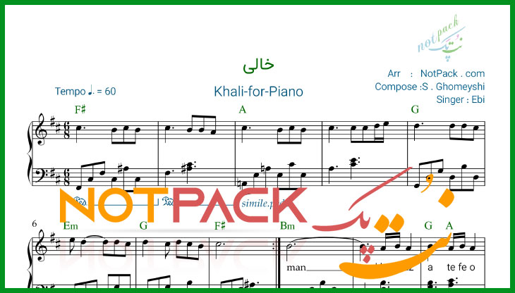 نت پیانو خالی از ابی/من خالی از عاطفه و خشم/با فیلم آموزشی و آوا نویسی