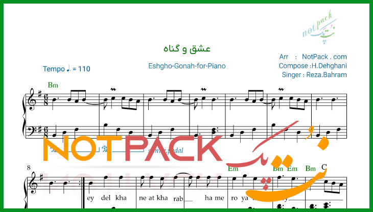 مشخصات نت پیانو عشق و گناه از رضا بهرام/طرح چشمان و جان تو و آن لب خندان تو