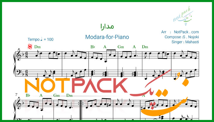 مشخصات نت پیانو مدارا از مهستی/گفتی فقط با منی هر دفعه که دیدمت