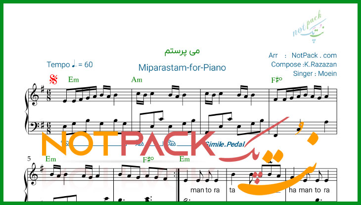 نکات قابل توجه ، قبل از اجرای نت پیانو می پرستم از معین/من تو را تا بیکرانها من تو را تا کهکشانها