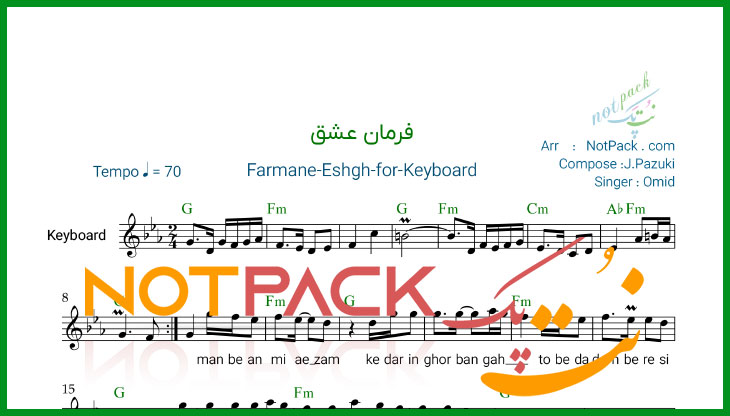نت کیبورد فرمان عشق از امید/عشق فرمان داده که بتو فکر کنم/با فیلم آموزشی و آوا نویسی