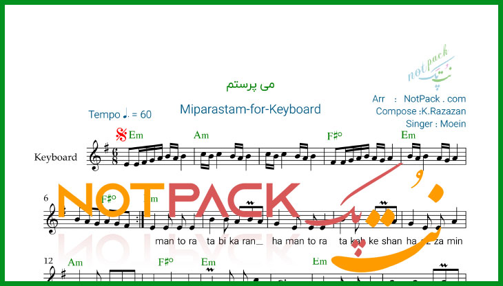 ( نت آهنگ می پرستم)