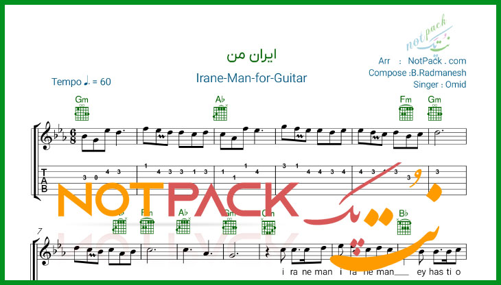 مشخصات نت گیتار ایران من از امید/ایران من ایران من ای هستی و ای جان من