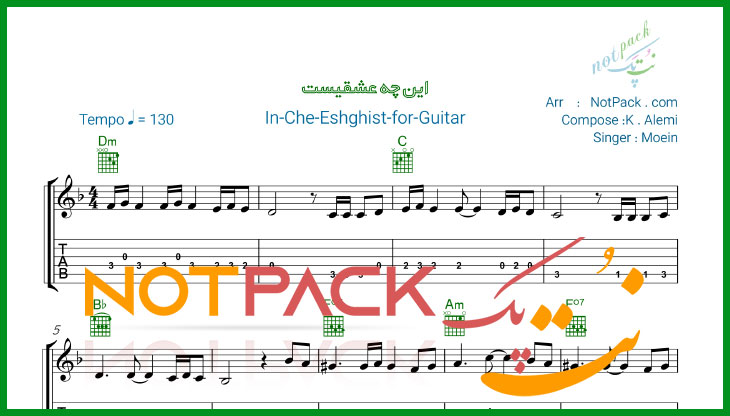 مشخصات نت گیتار این چه عشقیست از معین/باز لبهای عطش کرده من عشق سوزان تو را میجوید
