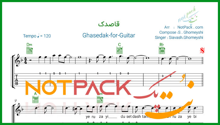 نت گیتار قاصدک سیاوش قمیشی